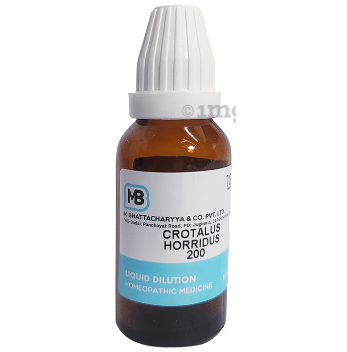 M Bhattacharyya & Co Pvt Ltd Crotalus Horridus Dilution is a homoeopathic remedy traditionally used to support the nervous system, circulatory wellness, and general mood balance. It is known for its benefits in promoting a sense of calm and aiding in the management of various physical and emotional discomforts.