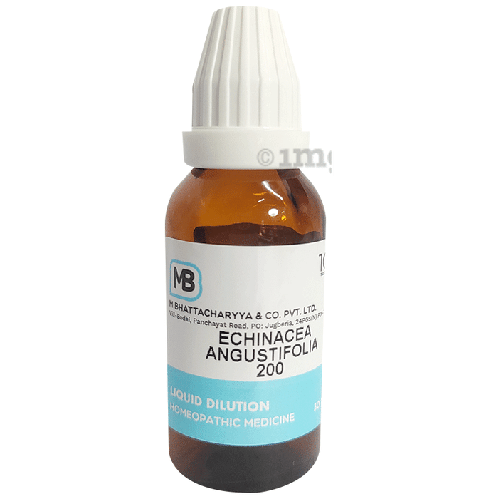 M Bhattacharyya & Co Pvt Ltd Echinacea Angustifolia Dilution 200 is a homoeopathic remedy prepared from the pure extract of the Purple Coneflower herb. Traditionally used for supporting blood health and skin wellness, it is beneficial in managing irritation from insect bites and easing general skin redness.