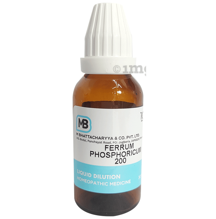M Bhattacharyya & Co Pvt Ltd Ferrum Phosphoricum Dilution 200 is a homoeopathic preparation commonly used to support general wellness, including blood health and overall vitality. Known for its versatile benefits, it helps in maintaining joint comfort and respiratory wellness.