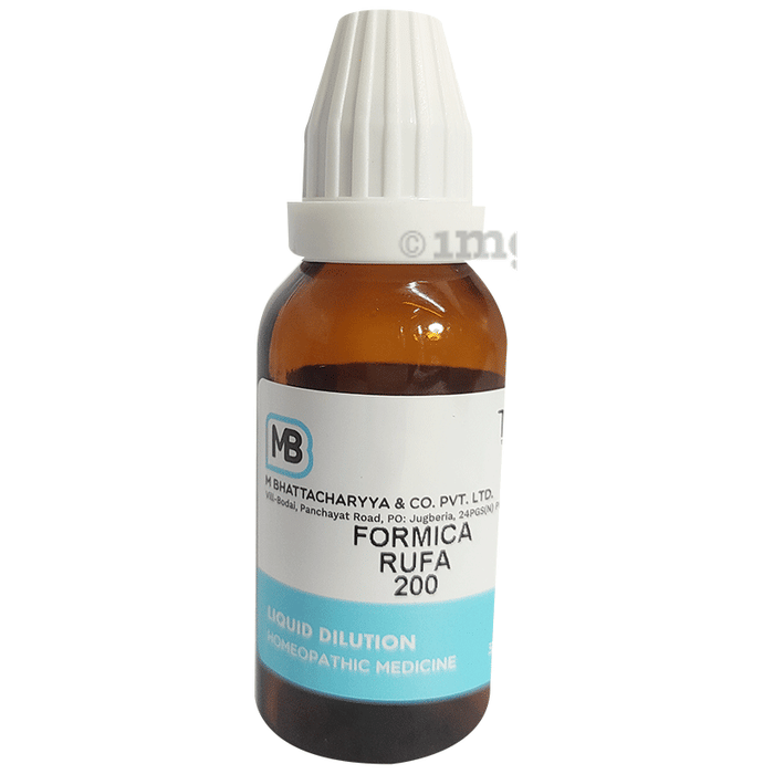 M Bhattacharyya & Co Pvt Ltd Formica Rufa Dilution 200 is a homoeopathic preparation traditionally used to support joint comfort and skin wellness. Formulated from the red wood ant, it offers general benefits for managing mild skin irritations and musculoskeletal ease.