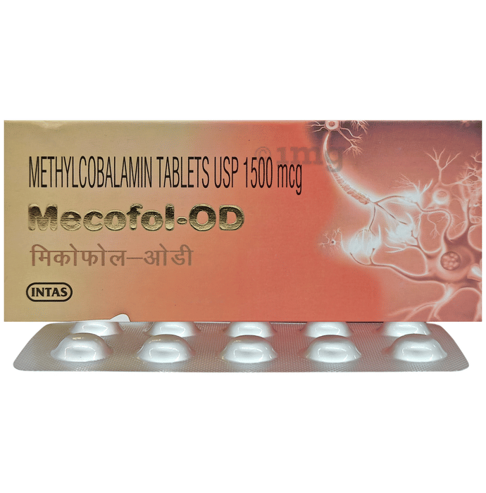Mecofol -OD Tablet is a dietary supplement with mecobalamin, commonly used to support nerve health and vitamin B12 levels. Mecobalamin or vitamin B12, is essential for maintaining good health, supporting nerve function and providing overall health benefits.