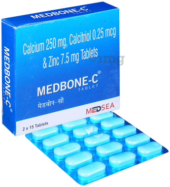 Medbone Forte Tablet contains Calcium Citrate Malate, Magnesium Oxide, Vitamin D3, Methylcobalamin, Vitamin K2- 7, and Zinc Oxide as active ingredients.