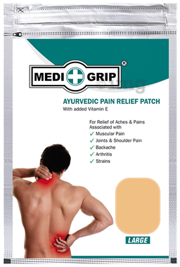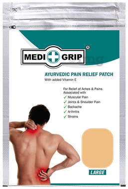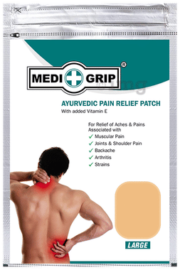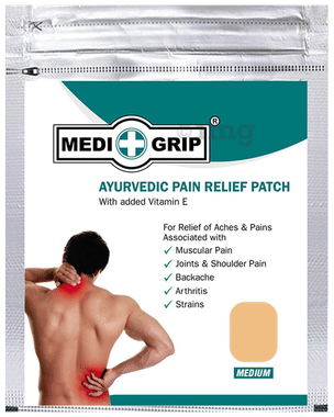 Medigrip Ayurvedic Pain Relief Patch consists of a suitable cloth of cotton or rayon or both mixed, evenly spread with a self-adhesive mass containing herbal extracts such as gandpura talia (methyl salicylate), pudina salva (menthol), karpura (camphor). The adhesive surface of the patch is protected with silicon-based release paper.