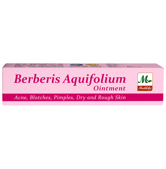 Medilife Berberis Aquifolium Ointment gets absorbed into the skin, nourishing it properly and reducing acne scars. It efficiently reduces the visibility of acne, zits, and pimples. It shields your skin from acne-causing germs and removes blemishes or pimple marks. It is recommended as a solution for dry, scaly skin. It might alleviate eczema and psoriasis symptoms.