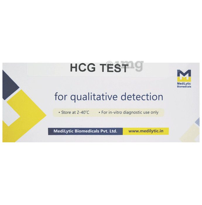 Medilytic Biomedicals HCG Test Kit is a self-test kit designed for early pregnancy detection. The test is intended for qualitative detection and comes with the necessary components to perform the test at home. It is designed to be used with a simple procedure for checking pregnancy status.