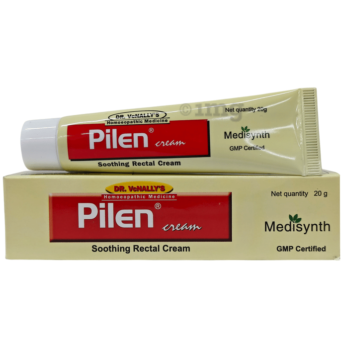 Medisynth Pilen Creamis a homoeopathic formulation crafted for the management of rectal ailments. Enriched with Aesculus Hippocastanum, Calcarea Fluorica, and Hamamelis Virginica, this soothing and non-staining cream may help provide effective relief from discomfort and irritation associated with rectal conditions.
