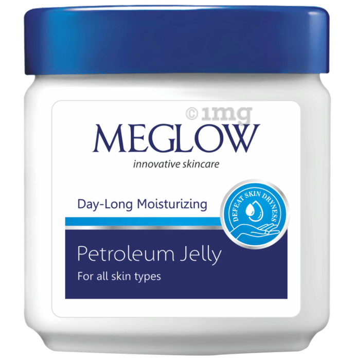 Meglow Day-Long Moisturizing Petroleum Jelly is suitable for all skin types and leaves skin extraordinarily soft and smooth by forming a barrier at the skin's surface and preventing water loss. Meglow petroleum jelly is especially beneficial for dry, ageing and delicate skin and protects skin from the effects of weather and sun exposure. The nourishing properties of Meglow petroleum jelly provide a soothing effect to the skin and thus is helpful to relieve dry skin, help relieve injured skin, and prevent chafing (chafing is a painful skin irritation that occurs when body parts rub together or rub against clothing such as heel or thigh), manage diaper rash and dry nails too.