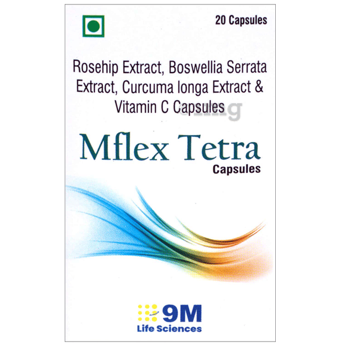 Mflex Tetra Capsule is a nutraceutical formulation designed with a blend of botanical extracts and an essential vitamin that may help support joint wellness, mobility, and overall musculoskeletal health. Each capsule combines rosehip extract, boswellia serrata extract, curcuma longa extract standardised to curcuminoids, and vitamin C, which together can contribute to maintaining joint comfort, connective tissue integrity, and antioxidant protection. This formulation may help in supporting joint flexibility and overall active lifestyle needs.