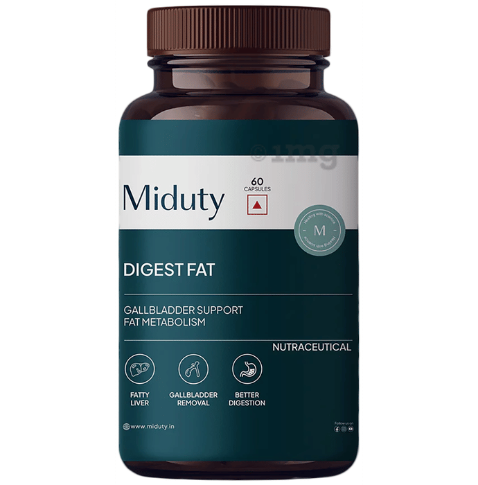The importance of the Gallbladder goes unnoticed; however, it is the one that helps in secreting enzymes that help in the breakdown of fats in our body. It is equally essential for improving digestion and is a key factor in burning fat in the body. Miduty’s Digest Fat Supplement containing Ox oxbile enzymes supports gut health as it breaks down dietary fat with the help of Digestive enzymes to be absorbed by the Intestine. Adding OX bile enzymes improves fat digestion from 51% to 84%. Digest Fat is a boon for the body as it increases the speed of the body for the digestion of fats and proteins.