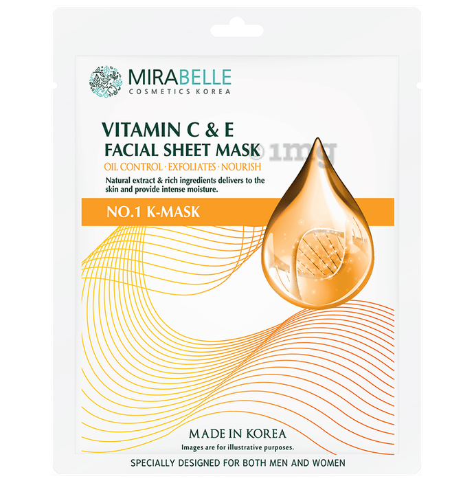 Mirabelle Cosmetics Korea Vitamin C & E Facial Sheet Mask is designed to provide your skin with deep nourishment, hydration, and oil control. Enriched with natural extracts and essential vitamins, this mask works to exfoliate the skin, unclog pores, and rejuvenate your complexion. The blend of Vitamin C, known for its brightening properties, and Vitamin E, renowned for its moisturising and protective qualities, helps improve skin tone, reduce pigmentation, and may help fight the early signs of ageing. Specially formulated for both men and women, this facial sheet mask can give your skin a refreshed, glowing appearance while helping to balance oil production and nourish the skin from within.