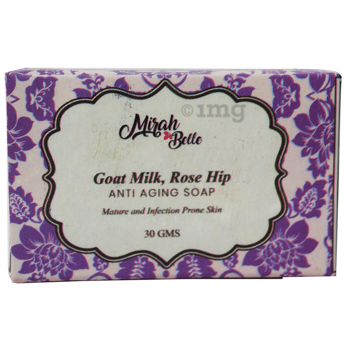Mirah Belle Goat Milk, Rose Hip Anti Ageing Soap aids in softening, soothing and moisturizing the skin. The soap helps to smoothen the fine lines and wrinkles on the skin. In addition to this, it assists in gently removing the impurities without drying sensitive skin.