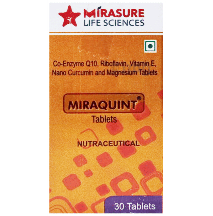 Miraquint Tablet may protect heart health and defend the body against harmful antioxidants. Vitamin E is important for many processes in the body. It is also prescribed in certain other conditions like cystic fibrosis and abetalipoproteinaemia.