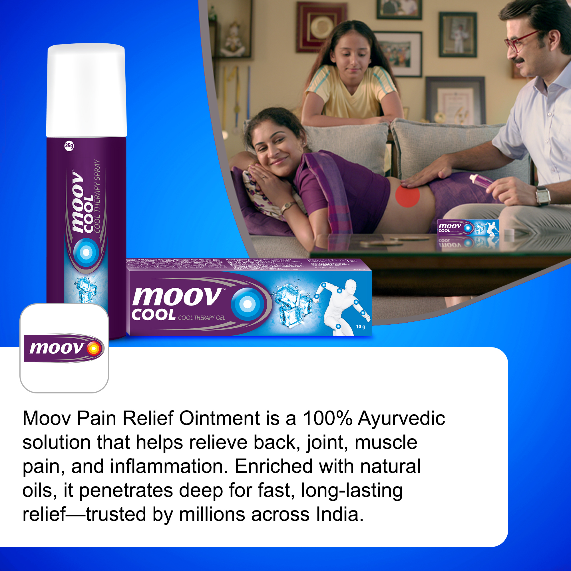 - Revolutionary Cold Therapy: Moov Cool is a revolutionary new cold therapy gel designed to help provide relief from body pain, especially for injuries that require cooling, such as sports injuries, sprains, and strains
