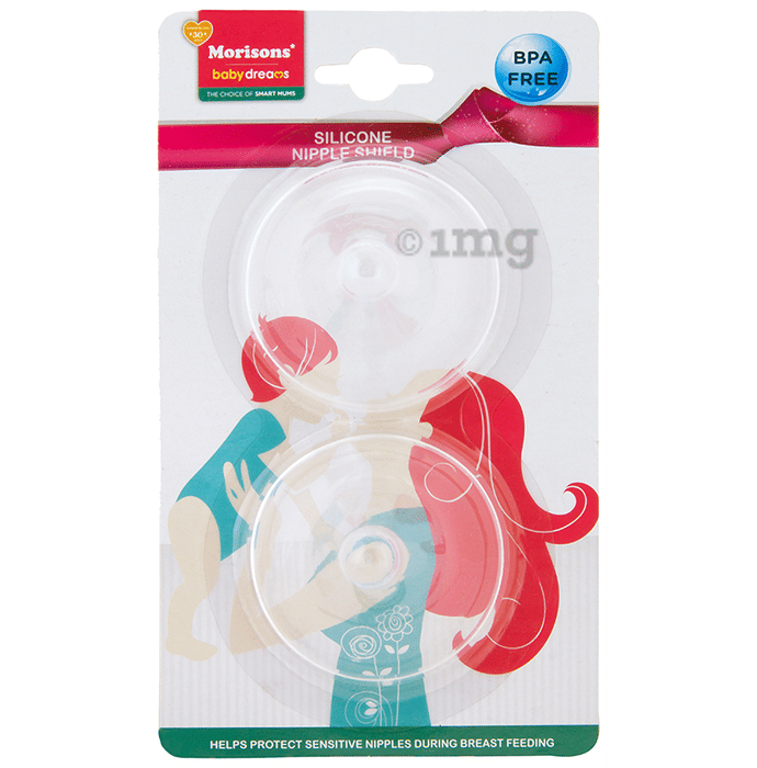 Morisons Baby Dreams Silicone Nipple Shield is a nipple-shaped sheath worn over the areola and nipple during breastfeeding. Morisons Baby Dreams nipple shields are made of soft, thin, flexible silicone. In case of inverted, flat or cracked nipples use contact nipple shield during breastfeeding. Special anatomical shape allows maximum skin contact between mother and baby. It is BPA-free and comes in a pack of two nipple shields.