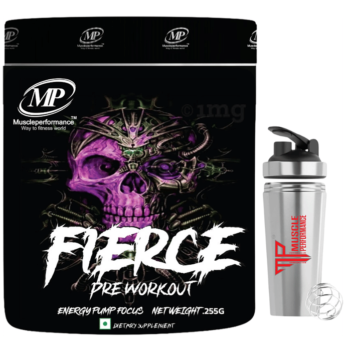 MP Muscle Performance Fierce Pre Workout Powder Watermelon with Steel Shaker