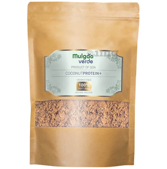 Mulgao Verde Coconut Protein+ Powder is a high-protein, unsweetened product made from coconut and virgin coconut oil using the H.E.A.L. process. With a rich nutty flavour, it can provide 493.3 Kcal energy and 22.4g protein per 100g. Suitable for raw consumption or as an ingredient in smoothies, milkshakes, and confectionery items like cookies and barfi.