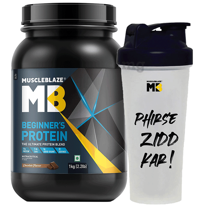 MuscleBlaze MB Beginner's Whey Protein Concentrate Powder Chocolate with Shaker is formulated keeping in mind the challenges workout beginners face in digesting protein. It delivers 40% of protein, i.e. 12gm of protein, 5.5gm EAAs, and 2.6gm BCAAs per 30gm serving to help improve muscle gains and strength and reduce muscle loss. This protein supplement for men and women contains all nine essential amino acids to aid in quick post-workout recovery. Whey protein concentrate (WPC) is the primary source of protein in this supplement which can be broken down and absorbed quickly. This supplement comes with a shaker bottle with 650ml capacity and a blender ball. It is made from safe, durable, and BPA-free plastic. The mixing ball ensures lump-free protein and BCAAs supplement shakes.