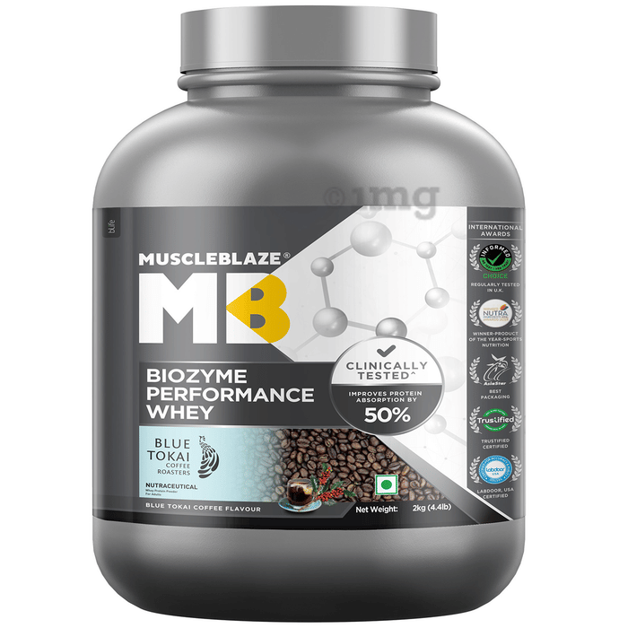 MuscleBlaze Biozyme Performance Whey Protein | For Muscle Gain | Improves Protein Absorption | Nutrition Care Powder Blue Tokai Coffee