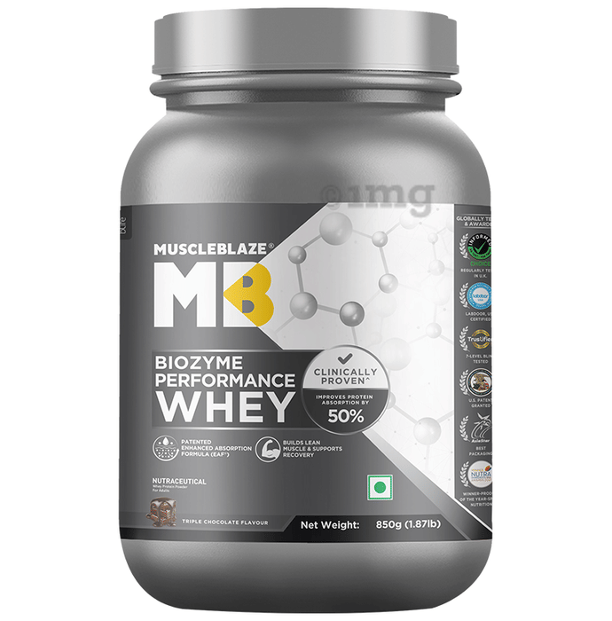 Information about MuscleBlaze Biozyme Performance Whey Protein | For Muscle Gain | Improves Protein Absorption | Nutrition Care Powder Triple Chocolate