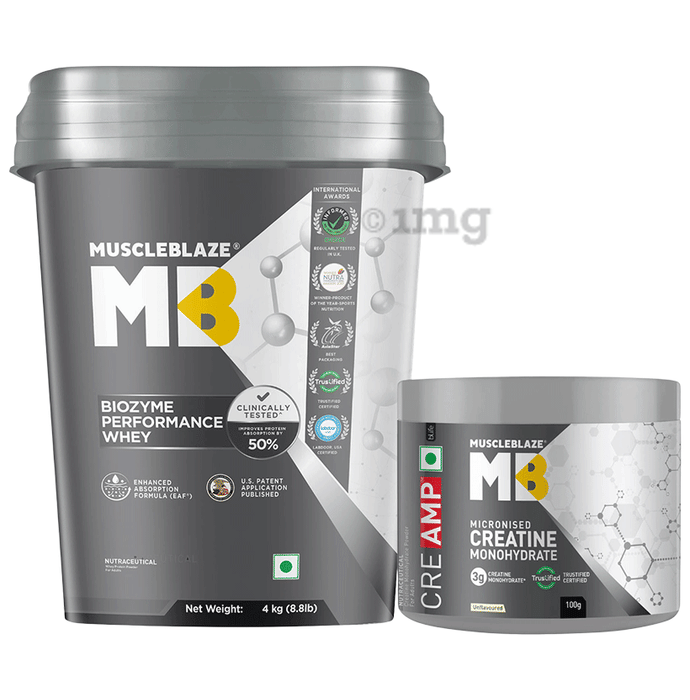 Muscleblaze Combo Pack of Biozyme Performance Whey Powder Chocolate Hazelnut (4kg) & Creatine Monohydrate Unflavoured (100gm)