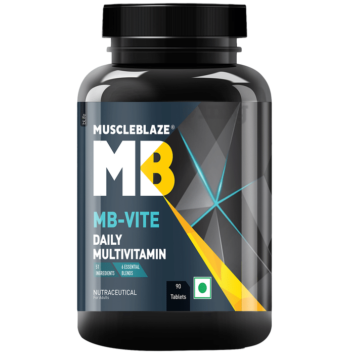 MuscleBlaze MB-Vite Multivitamin For Energy, Gut Health & Immunity These multivitamin tablets have 6 vital blends and 51 ingredients to upkeep key micro-nutrients and amino acids in your body. It is formulated for athletes and fitness enthusiasts to help boost immunity, fill nutrient gaps, enhance energy, build stamina, and support recovery and metabolic processes. The vitamins and minerals, amino acids, prebiotic and probiotic, enzymes, antioxidants, and metabolism blend help elevate your fitness and stamina. These multivitamin tablets are made with premium ingredients that are FSSAI and HACCP-certified which ensures quality and safety.
