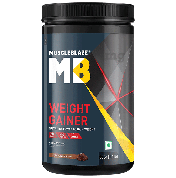 - 474 calories: MuscleBlaze Weight Gainer is a simple and effective healthy weight gain supplement in India for any adult looking to gain weight. It is crafted to provide 474 calories per serving with milk to support muscle nutrition.