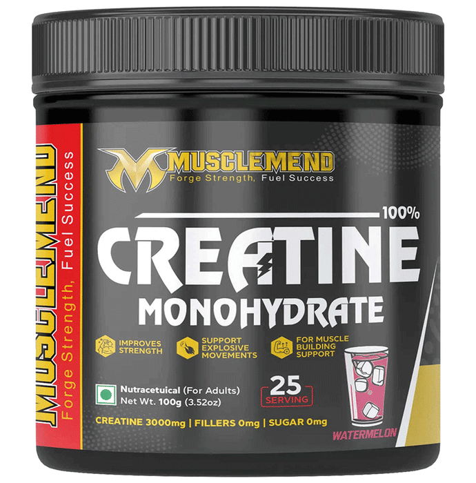 Musclemend Powder 100% Creatine Monohydrate Watermelon is a scientifically formulated supplement crafted to support power-driven nutritional goals through a pure, and effective creatine monohydrate blend. With zero fillers and no added sugars, this advanced formula can offer a clean creatine source for individuals following intense physical activity. This flavoured supplement is specially developed for adult athletes and fitness enthusiasts looking to support muscle functionality and performance parameters during demanding training schedules. Its micronised structure can help the body absorb the ingredient efficiently and can contribute to overall hydration balance and muscular recovery.