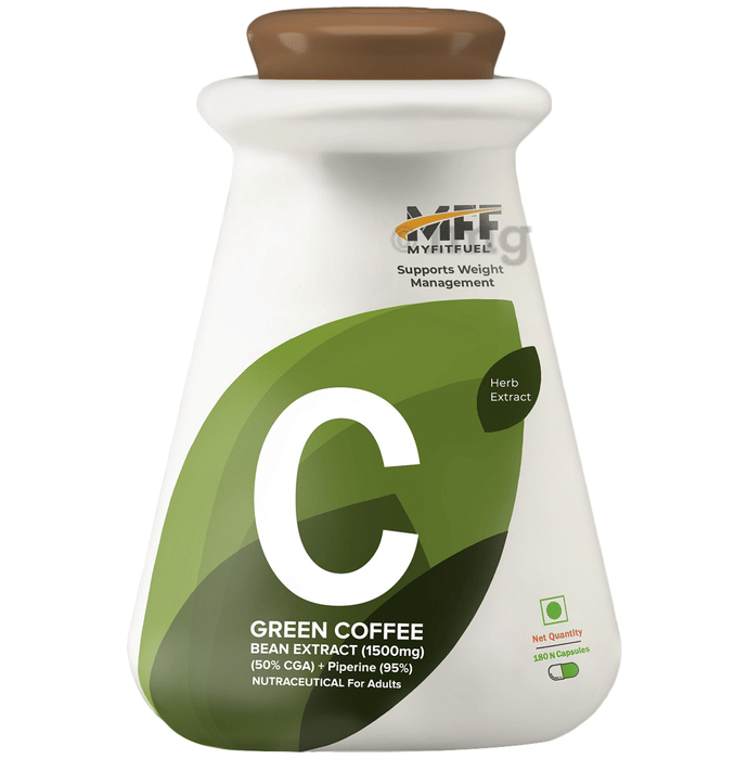 MyFitFuel Green Coffee Extract Capsule is a formulation containing natural Caffeine and Chlorogenic acid. The high-potency extracts help to boost energy in the body. It supports metabolism and nutritional absorption. Piperine helps to promote nutritional absorption. The capsule may help to stimulate the central nervous system and the brain. It helps in being more active and alert all day long.