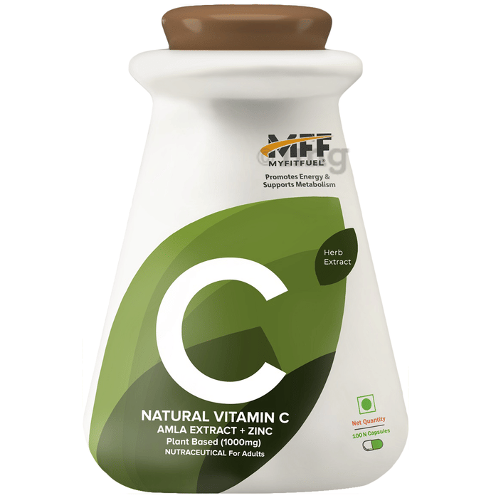 MyFitFuel Natural Vitamin C Capsule is a herbal formulation that provides 1000mg of pure Amla extract and 5mg of Zinc per serving. It helps to boost overall immunity. It helps to protect cells from damage and keeps them healthy. It helps to maintain skin, bone, blood vessels and cartilage health. It speeds up the wound-healing process. Amla is a rich source of Vitamin C. The capsule helps to boost collagen production and has anti-ageing and antioxidant properties.