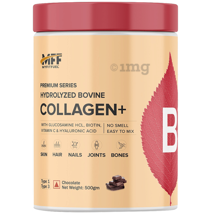MyFitFuel Premium Series Hydrolyzed Bovine Collagen+ With Glucosamine is a dietary supplement that combines hydrolyzed bovine collagen with glucosamine, hyaluronic acid, biotin, zinc, and vitamin C. The supplement is designed to support various aspects of health, including skin, hair, nails, and joint wellness. It contains hydrolyzed bovine collagen, which is broken down into smaller particles for easier digestion and absorption by the body. Collagen is an essential protein that plays a crucial role in maintaining the strength and elasticity of connective tissues, such as skin, hair, nails, and joints.