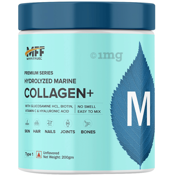 MyFitFuel Premium Series Hydrolyzed Marine Collagen+ with Glucosamine This collagen made from high-quality ingredients is a dietary supplement with a beneficial combination of amino acids. Great for anyone looking to improve their skin, joints and overall well-being! Made from chains of amino acids that act as build blocks to flawless skin. 1.5 times faster absorption and assimilation than other collagen. Hydrolyzed protein is broken into tiny particles, thus making it easier to digest than others.