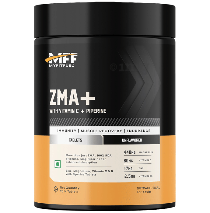 - MyFitFuel ZMA+ with Vitamin C & Piperine Tablet contains zinc-containing enzymes to support normal metabolic activity during workouts