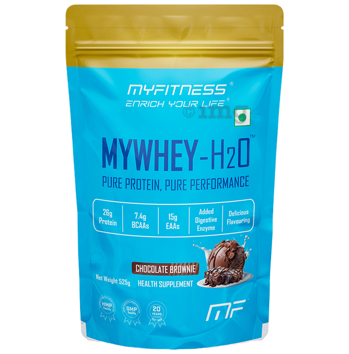 Myfitness My Whey-H2O Chocolate Brownie is a thoughtfully crafted whey protein blend that may help support your nutritional goals. With its indulgent chocolate brownie flavour and no added sugar, it could complement your dietary requirements. This product includes permitted natural colours, added flavours, and non-caloric sweeteners to provide a delightful taste experience.