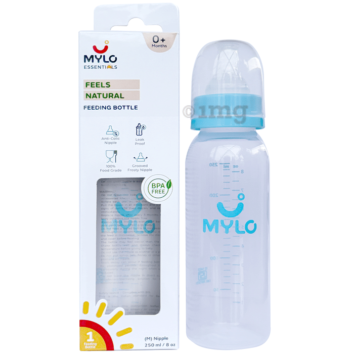 Information about Mylo Feeding Bottle Feels Natural for New Born Baby Anti Colic & BPA Free Medium Nipple Sky Blue