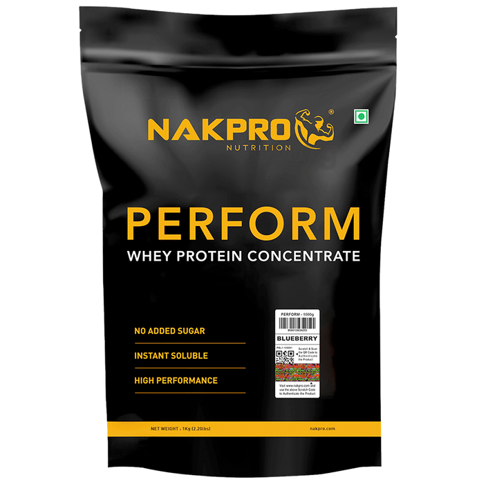 Nakpro Nutrition Perform Whey Protein Concentrate for Muscle Recovery | No Added Sugar | Flavour Blueberry