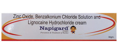 Napigard Cream is a dermatological cream that promotes the healing of chapped skin and diaper rash. Diaper rash is an inflammatory reaction localised to skin areas usually covered by the diaper. This is a specially formulated cream designed to provide gentle yet effective relief for various skin concerns that babies may experience. With a unique combination of benzalkonium chloride, lignocaine, and zinc oxide, this cream not only soothes and protects but also aids in the healing process. Napigard cream is an essential addition to your baby's skincare routine, offering a sense of comfort and relief when it's needed most.