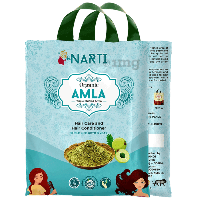 Narti Amla Powder is a pure and natural product, designed for external use on hair and skin. Known for its rich content of vitamins, minerals, and antioxidants, this chemical-free powder may help strengthen hair follicles, promotes hair growth, and control skin issues such as acne and fine lines. Suitable for all hair types and skin, Narti Amla Powder revitalises hair by nourishing the scalp and providing a natural shine. It is also beneficial for skin as it purifies, smoothens, and promotes a healthy glow. Narti 100% Organic Amla Powder is vacuum-sealed to ensure freshness and efficacy. It is completely free from preservatives, making it a safe and natural choice for hair and skin care.
