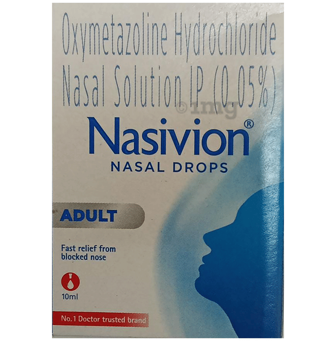 Nasivion Nasal Drops Adult is formulated with oxymetazoline hydrochloride, a decongestant that helps open up blocked noses resulting from common cold, dust and pollution, or seasonal changes. It provides quick relief by narrowing the blood vessels in the nasal passages.