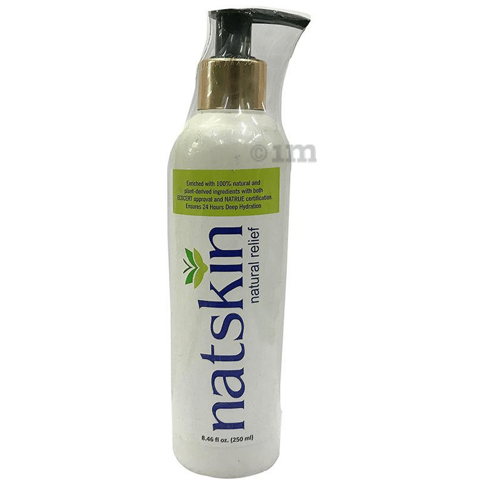 Natskin Natural Relief Lotion consists of botanical extracts formulated to support skin health. It is a water-based paraben-free formulation and is free from alcohol. It helps soothe the skin and keeps it hydrated all day.