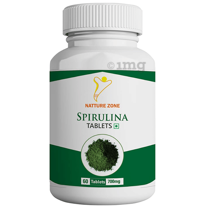 Natture Zone Spirulina 700mg Tablet is rich in a range of vitamins and minerals essential for maintaining healthy immune systems. It is a rich source of vitamins E, C, and B1, B2, B3, B6 and omega 3 and 9. Research finds that spirulina also boosts the production of white blood cells and antibodies that manages viruses and bacteria in the body. It contains decent amounts of copper, iron, magnesium, potassium and manganese and small amounts of almost every other nutrient that you need. The quality of the protein in spirulina is considered excellent. It gives all the essential amino acids that one needs. Phycocyanin is the main active compound in spirulina, and it has antioxidant and anti-inflammatory properties.
