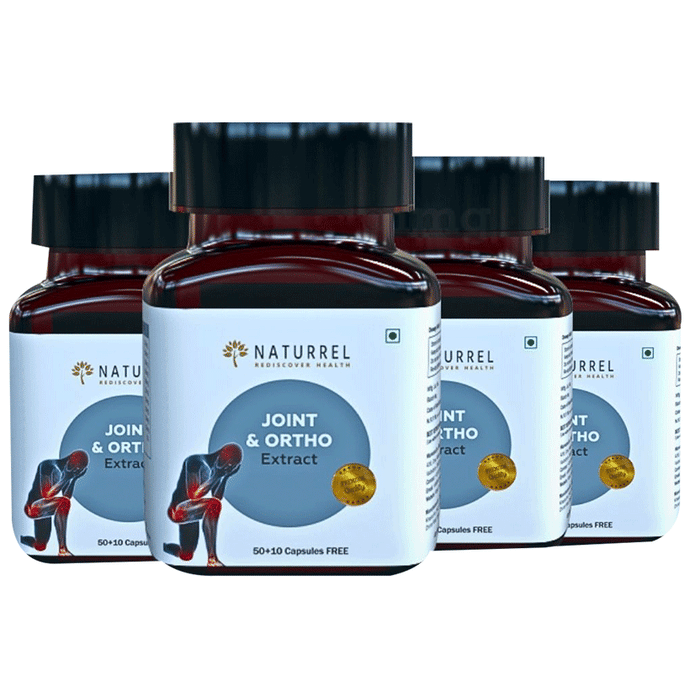 Naturrel Joint and Ortho Extract is a dietary supplement formulated with shallaki, nirgundi, haridra, guggal, ashwagandha, hadjod, gokhru, giloy, ginger, and pipali to relieve knee pain, body pain, and back pain. It can help relax individuals with cervical spondylitis and joint ailments. These potent herbs may help in muscle relaxation, bone conditioning, and overall strength improvement.