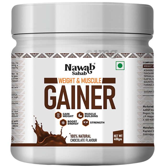 Nawab Sahab Weight & Muscule Gainer (400gm Each) helps manage weight, strength and energy. It naturally enhances and builds your body and muscles. This 100% natural and vegan formulation does not contain sugar, artificial colours and banned substances.