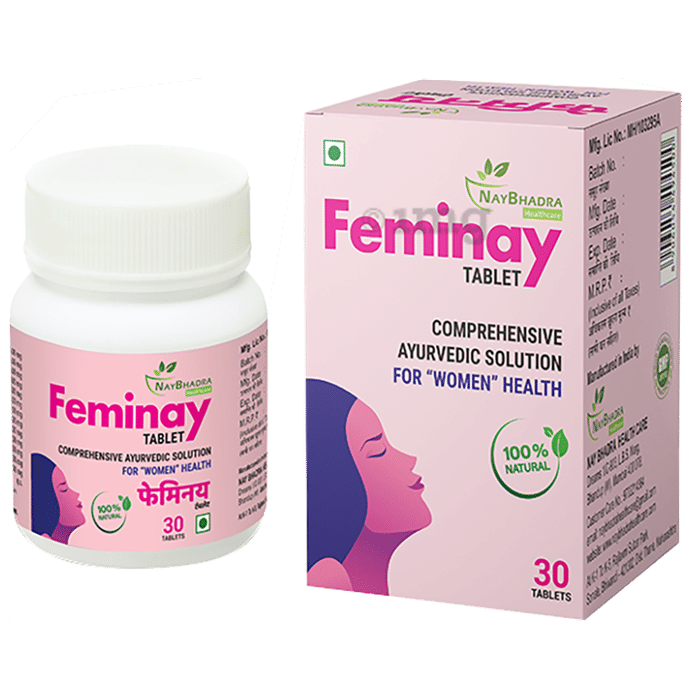 Nay Bhadra Health Care Feminay Tablet is a comprehensive Ayurvedic solution for overall women's health. It is a herbal uterine tonic that is very helpful in menstruation – regulating periods, painful cramps and excessive bleeding; balancing reproductive hormones, Leucorrhea and Vaginitis. It also helps in reducing stress due to related problems.
