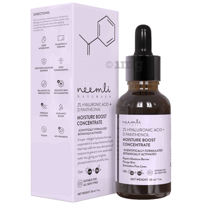 Neemli Naturals 2% Hyaluronic Acid + D Panthenol Moisture Boost Concentrate Serum is a super-charged hydration formula that can help fight moisture loss and signs of aging. It provides deep hydration that can help reduce fine lines and wrinkles.