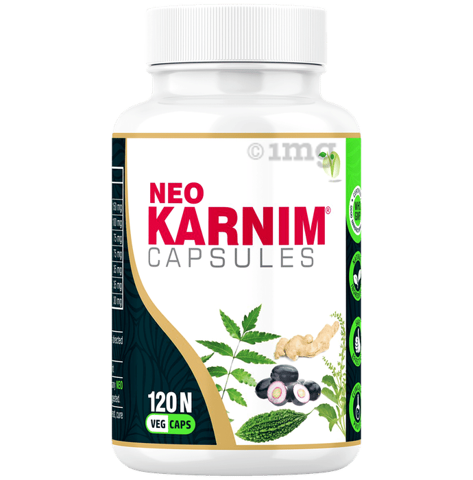 Neo Karnim Veg Capsule are formulated with Karela, Jamun, Neem, Tulsi, Kutki, Shuddha Guggul, and Sonth, which can be used for metabolic support. These capsules may help in managing sugar metabolism and may assist in maintaining digestive and pancreatic functions. The blend of herbs may support the body's natural mechanisms in regulating glucose levels and may contribute to overall well-being.