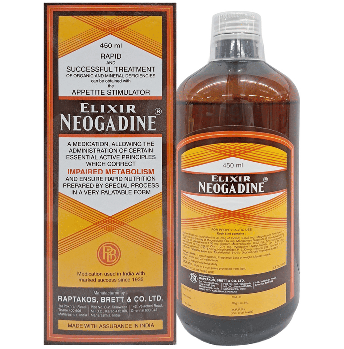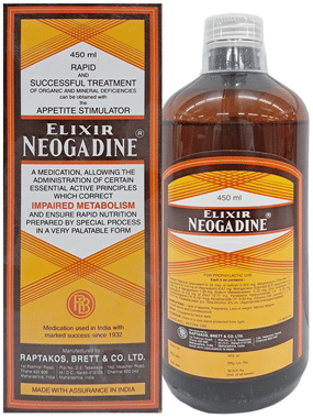 Neogadine Elixir is an appetite stimulator formulated to help manage mineral deficiencies. It allows for the administration of certain essential active nutrients which helps correct impaired metabolism. It supports digestion and helps relieve constipation.