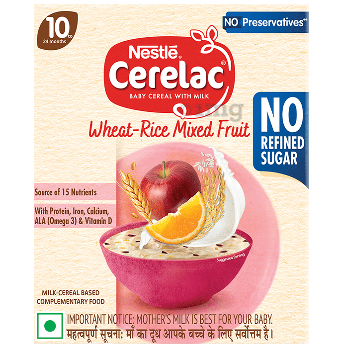 Nestlé CERELAC Baby Cereal with Milk is a complementary baby food for infants from 10 to 24 months. It is also a source of 15 important nutrients.. With 155 years of scientific expertise in infant nutrition, Nestlé develops infant nutrition products backed by evolving science and research. Contains no Refined Sugar. Important Notice: Mother’s milk is best for your baby.