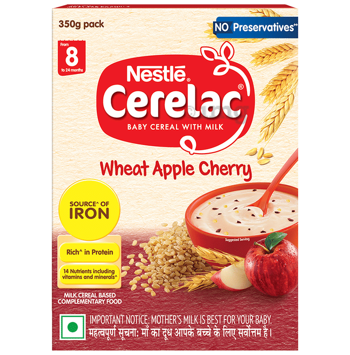 - INSTANT CEREAL: This Wheat Apple Cherry baby food is packed with the goodness of cereal, milk & fruit.