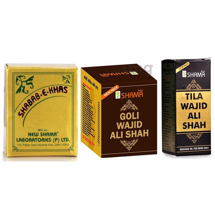 Information about New Shama Combo Pack of Shabab-E-Khas 125gm, Goli Wajid Ali Shah 10 Tablets & Tila Wajid Ali Shah 15ml