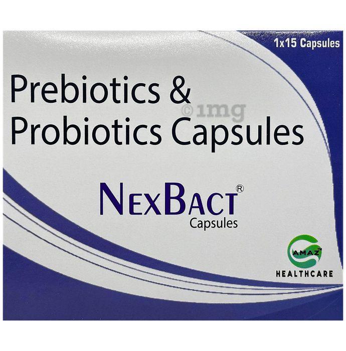 Nexbact Capsule contains 2.75 billion spores of Lactobacillus acidophilus, Lactobacillus rhamnosus, Saccharomyces boulardii, and Bifidobacterium longum, which may help support digestion, immunity, and overall gut health. This formula combines prebiotics — non-digestible fibres that support beneficial bacteria growth—and probiotics, live microorganisms that may contribute to digestive comfort and nutrient absorption. Together, they help maintain a balanced gut environment, potentially reducing inflammation and supports well-being.